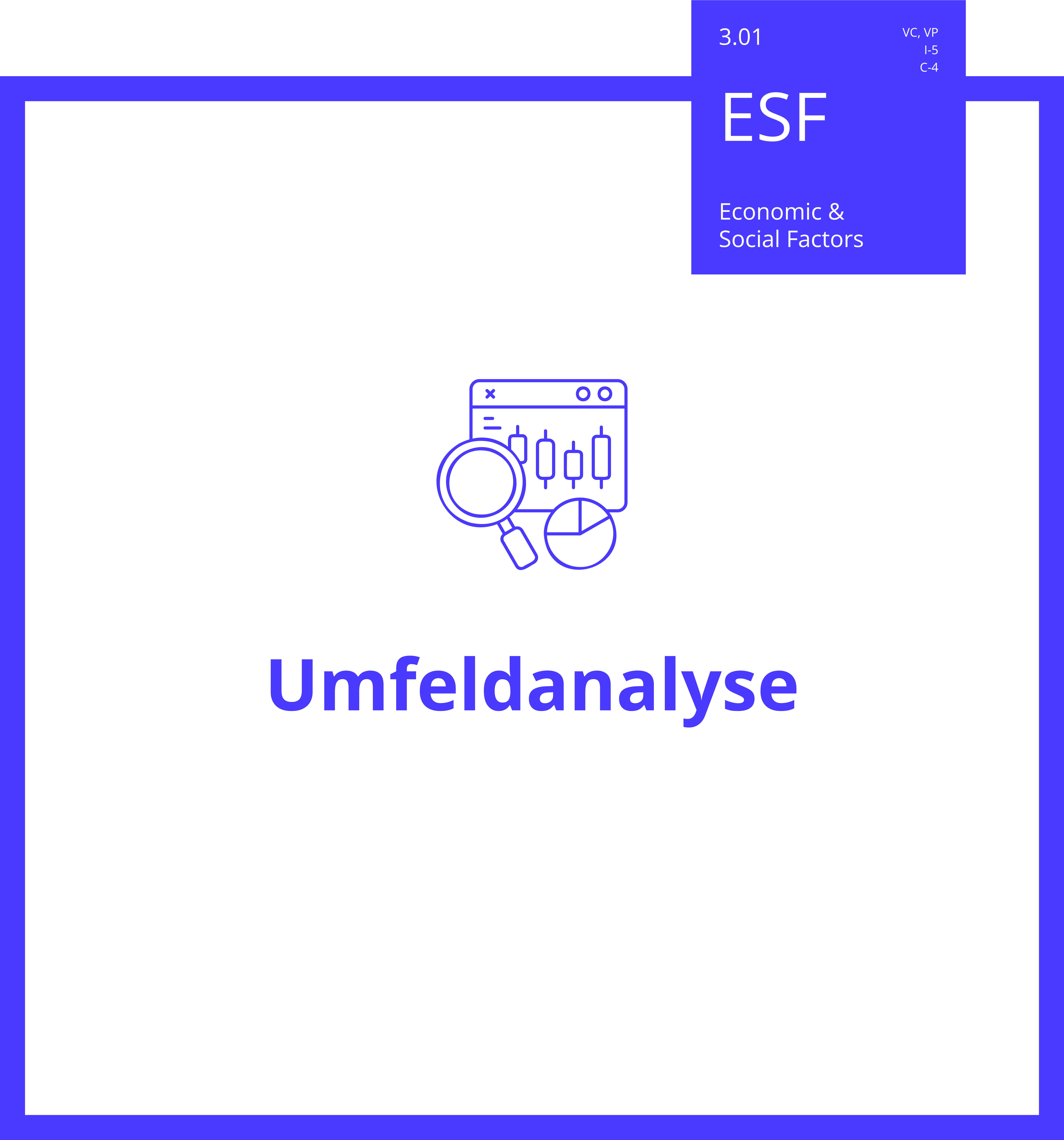 Die Umfeldanalyse unterstützt Unternehmen dabei, ihr externes Umfeld strukturiert zu analysieren – von Marktkräftenüber relevante Trends bis hin zu branchenspezifischen und makroökonomischen Einflüssen. Basierend auf dem Modell von Strategyzer wird die Umwelt in die vier Bereiche Market Forces, Key Trends, Industry Forces und Macroeconomic Forces segmentiert, die das Business Model Canvas umgeben und wesentliche Rahmenbedingungen für strategische Entscheidungen liefern. Durch visuelles Mapping und strategische Diskussionen entsteht ein gemeinsames Verständnis der externen Risiken, Chancen und Gestaltungsräume für neue Geschäftsmodelle.